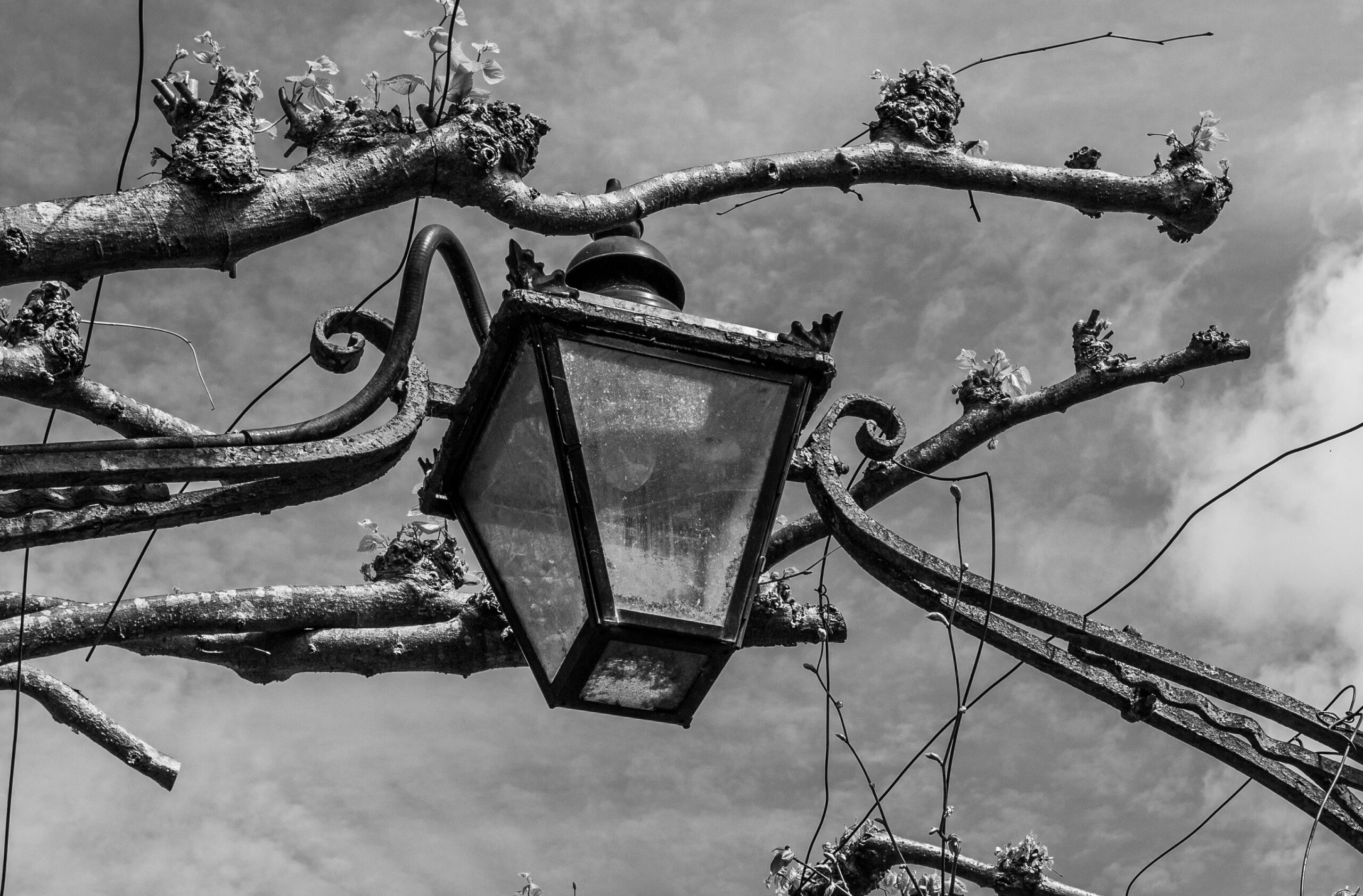The walkway through St Andrew’s Churchyard in Bristol is nowadays known mostly as Birdcage Walk, which seems fitting given the look of it in this photo I took all the way back in 2007. However, this place name has been redistributed from the diagonal path across the adjacent Victoria Square, which used to be lined with tall railings. This name change still rankles with older locals, who try to keep the name they’re used to, “Lime Walk”, in use. I snapped this lamp that’s nestled in amongst the pleached limes on one of my many wanders.