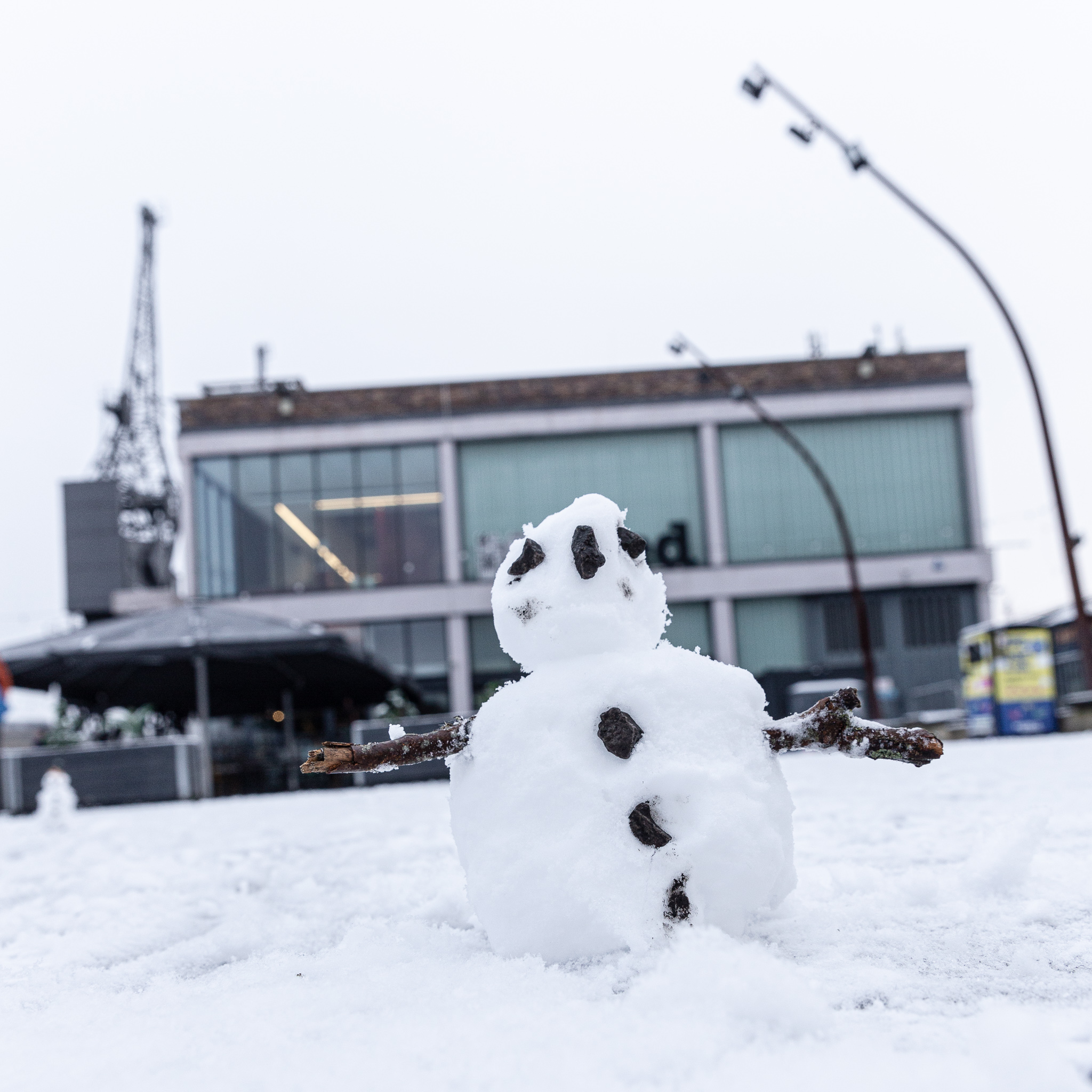 So far this winter we’ve had a single day of light snow, but that was enough for my friends Sarah and Vik to call me up and ask if I’d like to have a harbourside wander before it melted. We did, and I was glad, and finding this tiny snowman in the kids’ play area at the side of the M Shed was one of the delights.
